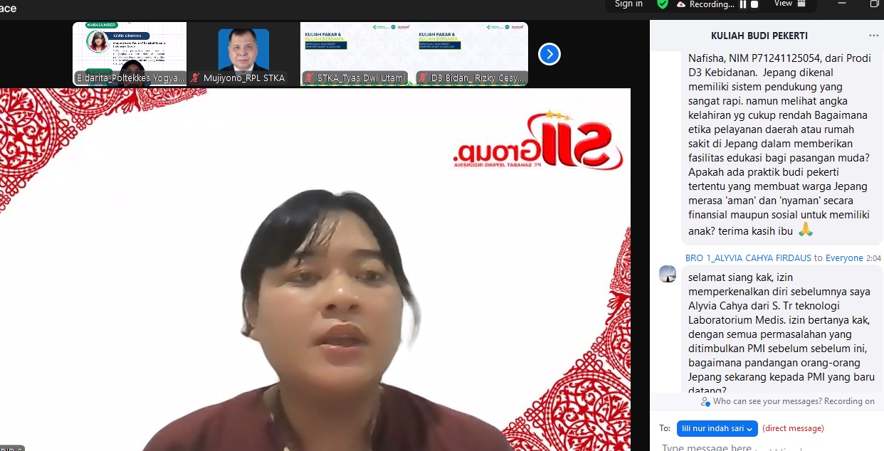Poltekkes Kemenkes Yogyakarta menyelenggarakan kegiatan Kuliah Bersama Budi Pekerti pada Rabu Wage, 11 Februari 2026. Kegiatan ini menghadirkan narasumber Didis Gismara dengan materi bertajuk “Tata Cara Pergaulan yang Baik di Masyarakat Asia (Norma dan Nilai Tata Cara Perilaku Kehidupan Sehari-hari di Asia) dan Praktik Perilaku Berbudi Luhur yang Berlaku di Masyarakat Asia.”